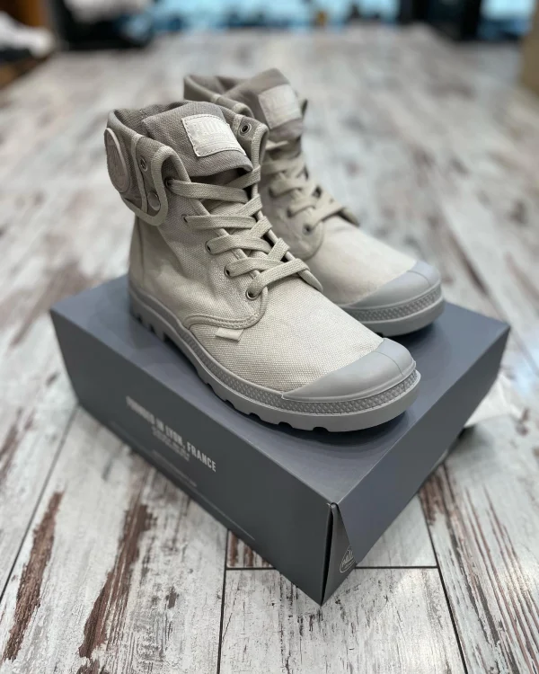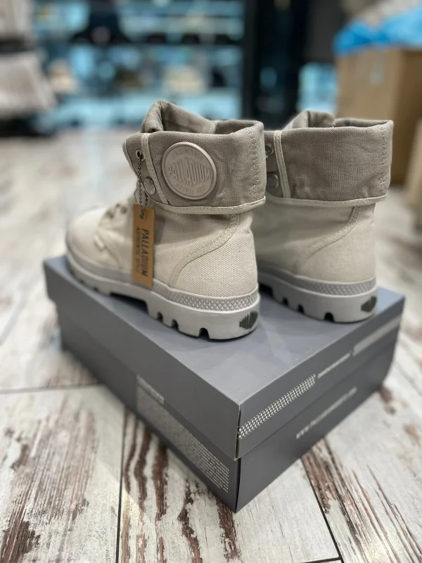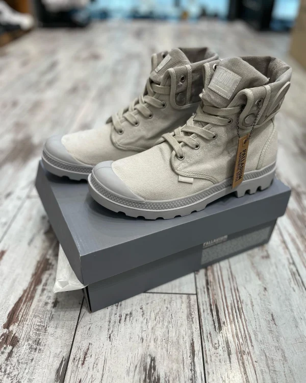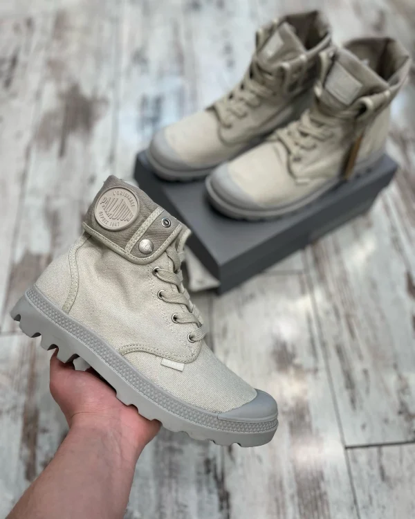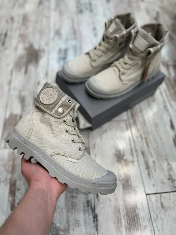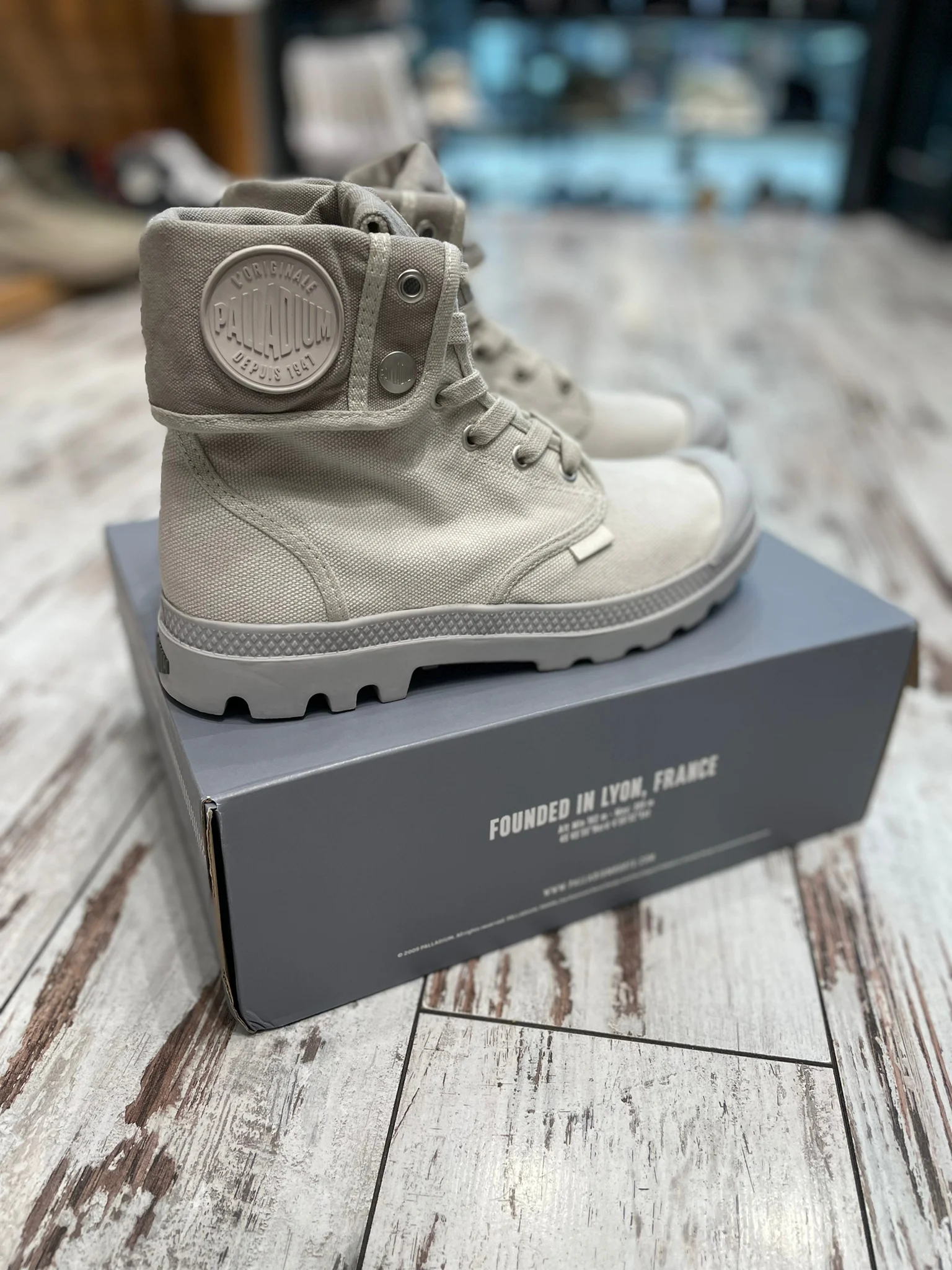 מגף Palladium מתקפל בצבע אפור סילבר עם סוליה אפורה